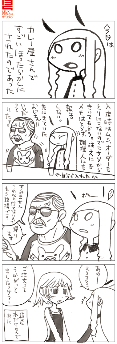 あたくしの返事で注文を預っていることを思い出した様子でした。でも無言でそのまま厨房へもどっていきました。そのとき、隣の席にいた人が「すみませんもういいです」と言って帰って行きました。続いて、あたくしよりあとに来たお客さまが無言で立ち去りました。