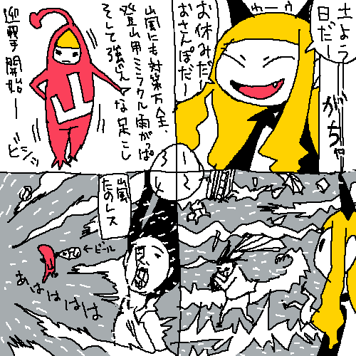 すごい嵐になっちゃったけど、おやすみだ。