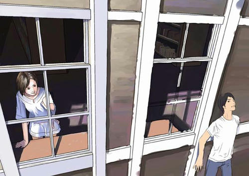 はじめは2人の距離に物足りなさを感じていたのですが、柱(というか窓枠)に色が入ったことで、距離に現実味が出てきた感じです。