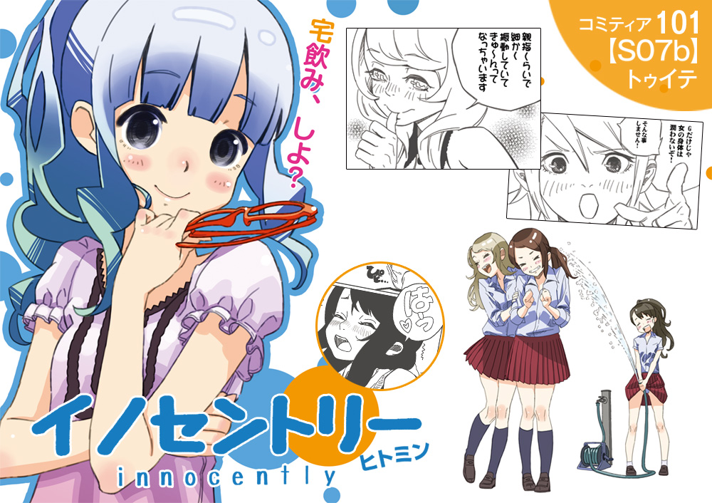 COMITIA101のヒトミンの新刊「イノセントリー」はイラスト&3人娘のちょっぴりエッチな宅飲みマンガ!