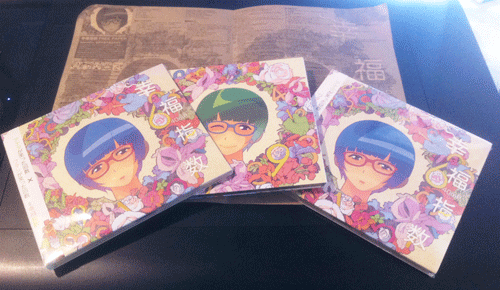 「幸福指数」、大変すばらしい曲たちが詰まったワンダフルな出来になったのです。あたくしはいただいた音源をひたすらにリピートしながら笑ったり泣いたり聴き入ってうっとりしたり映像を思い浮かべたり賞味期限の切れたおいなりさんを食って食中毒になったりワラビーが福岡県に出没したり風が吹いたらスカートが捲れそうになったりアッコにおまかせなどできはしないと考えたりしていました。あと、デザインもしました。