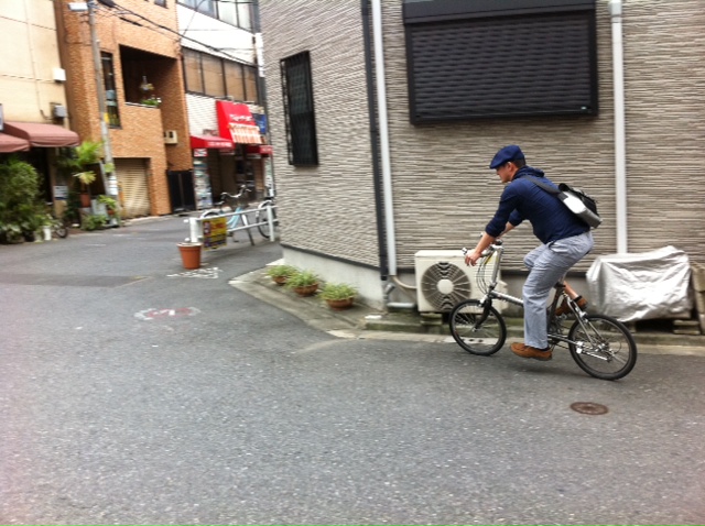 本日の画像は自転車とカメラの達人、丙さん。あたくしをだましてシングルスピードを買わせようとした。