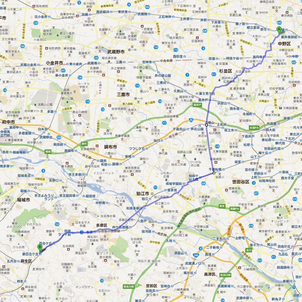 新百合ヶ丘まで電車に乗って受け取りに行き、そのまま乗って帰ってきたのです。アイホンはあってもググルマップなど見はしない勇ましいあたくしは車視点で適当に知ってる街に向かって走りました。