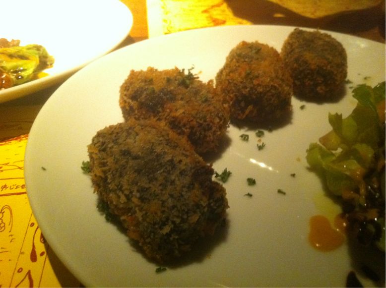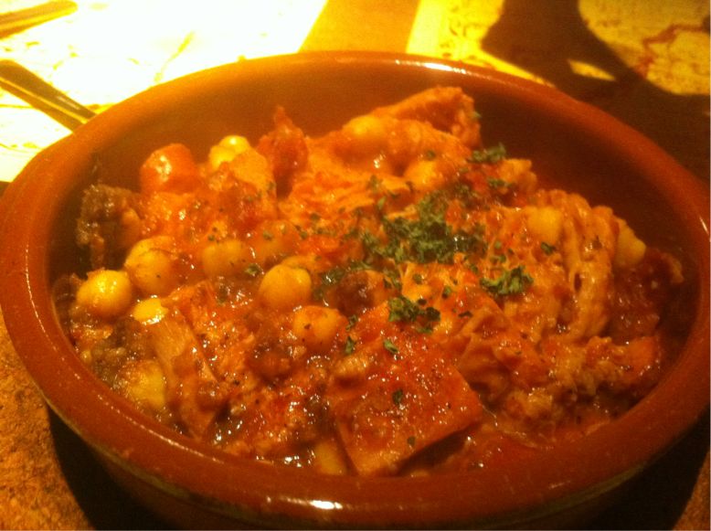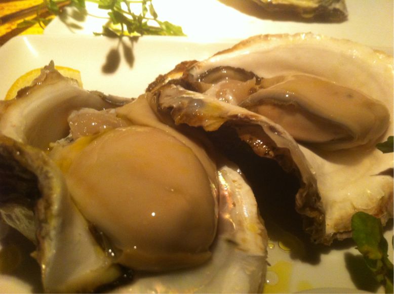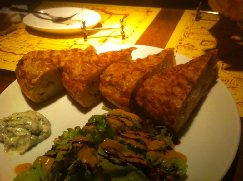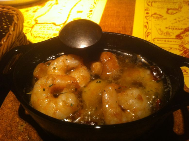 エビとマッシュルームをオリーブオイルで煮たやつ。