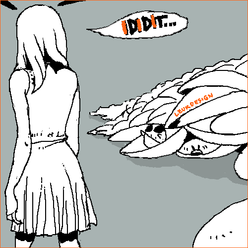 かつてバトル絵板があったころ、こういうのを描くときまってヒトミンのやつが「えっこれ水中の絵なんですか!?いやー○○が○○○だからなんか手抜きした空かなんかかと思いましたよ!少なくとも水中には見えませんでしたよー水中だったんですねーHAーHAHAHAHA!」とかドヤ顔で言ってきてアタシはこのやろうぶちころしてやるとか思ってそのつど血で血を洗う戦いに発展して、最終的にそこにまったく意味のわからないことを言いながら仲裁に入ってくるくろまるをフルボッコにする儀式があったことをなんとなく思い出した。あのころは良かったなぁ。みんなワイルドだった。
