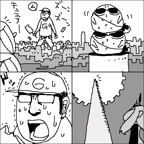 ぶわーってなってどわーってきて、そんで「ふあー!」とか言いながらもってかれて、気がついたら防波堤にのぼる階段の途中におっこちとったのだ。もっと遠くまで運ばれていったおっさんとかもいたし、骨がおれてキャアキャア言っているギャルもいた。アタシはすっくと立ち上がりすり傷以上のケガがないことを確かめると、悲鳴を上げてその場から逃走した。島から出る間に何台もの救急車とすれ違った。