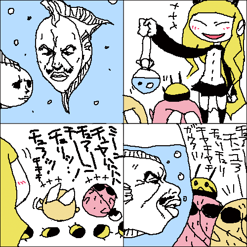 ちがう絵をやるだけでリフレッシされるのであり、つまり熱心な絵をつくる時は複数の絵を進めるとあきなくてよいのかもしれないと思ったりした。でもそうなると今度は集中力が分散してようないのかとも思ったりした。らくがきはこの、肩の力のヌケぐあいがよろしいのね。