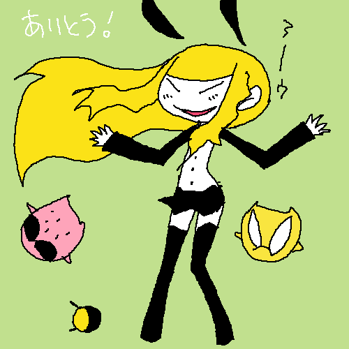 たのしく お描きなさっておるのが伝わってくるような絵なのだ!すてきね。そしてこのアリコさんは大変な美女でインターナショナルでパツキンで猫耳でアル中!Eijiさんありがとうございまース!うれしいでス。(^^)