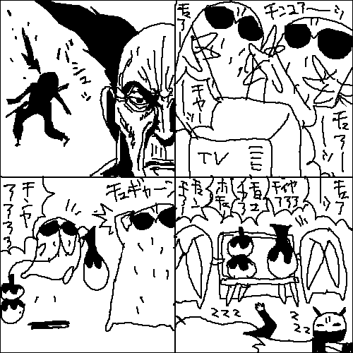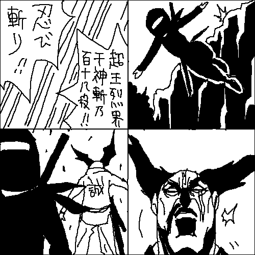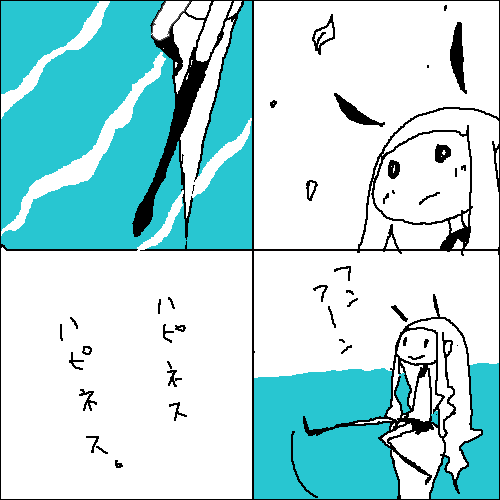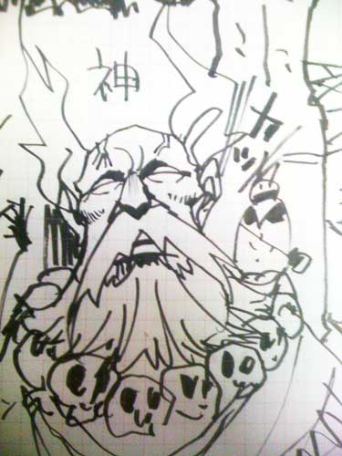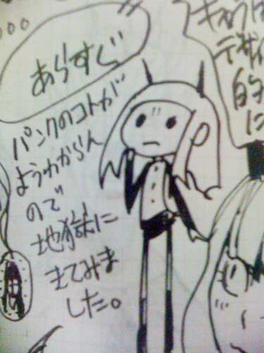 あれだねー、こんな一発書きのストーリーもなにもない思いつきマンガでも、一生懸命描いてみるといろいろと発見があったりなんかして。ちゃんとまんが描いてみたいかも!とかおもっちった。でもねえ、読んでくださるヒトとコミュニケーションを撮りながら進めてゆくマンガとゆう表現、すっげえむつかしいぞ。こわいぞ!アタシなんてぜんぜんだめ!(アウー)
