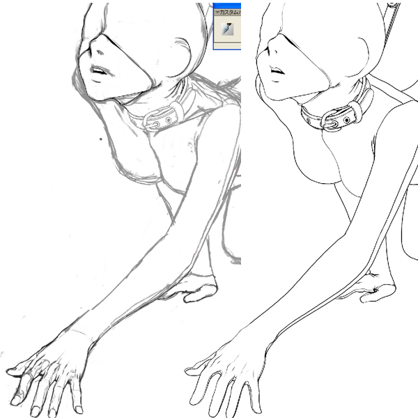 ペン入れはpainterで。ちょっとアイコンが見えている「ペン先丸10」のデフォルトです。