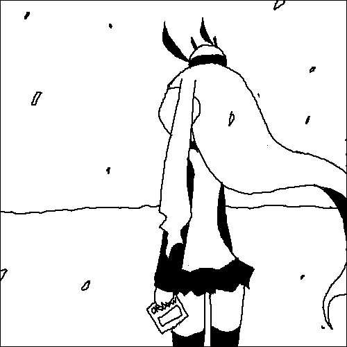 このままPCに取り込んで、線画のままのと中を塗りつぶした2通りをつくりまス。